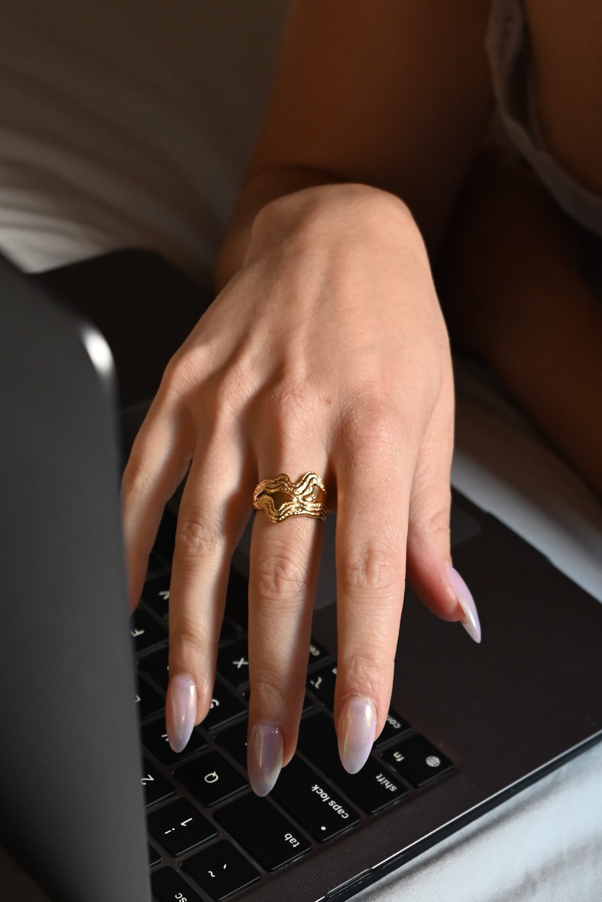 18K gold plating, this ring is hypoallergenic stainless steel. This modern ring is unique and durable. Its gold plated style is a timeless piece for any jewelry lovers collection.