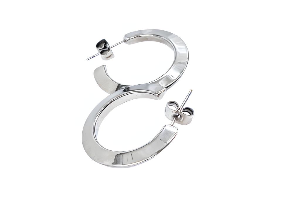 18k gold plated stainless steel. Hypoallergenic, water-resistant, tarnish-free. Available in gold or silver and are the perfect hoop to enhance any outfit.