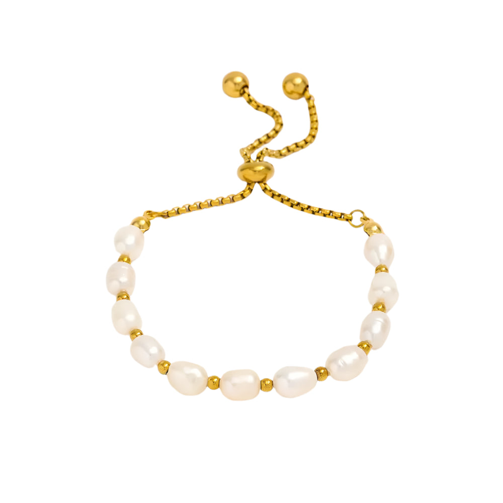Pearl Bracelet with tarnish-free gold accents. Waterproof, hypoallergenic, and adjustable for a perfect fit, designed for all-day comfort and lasting shine.