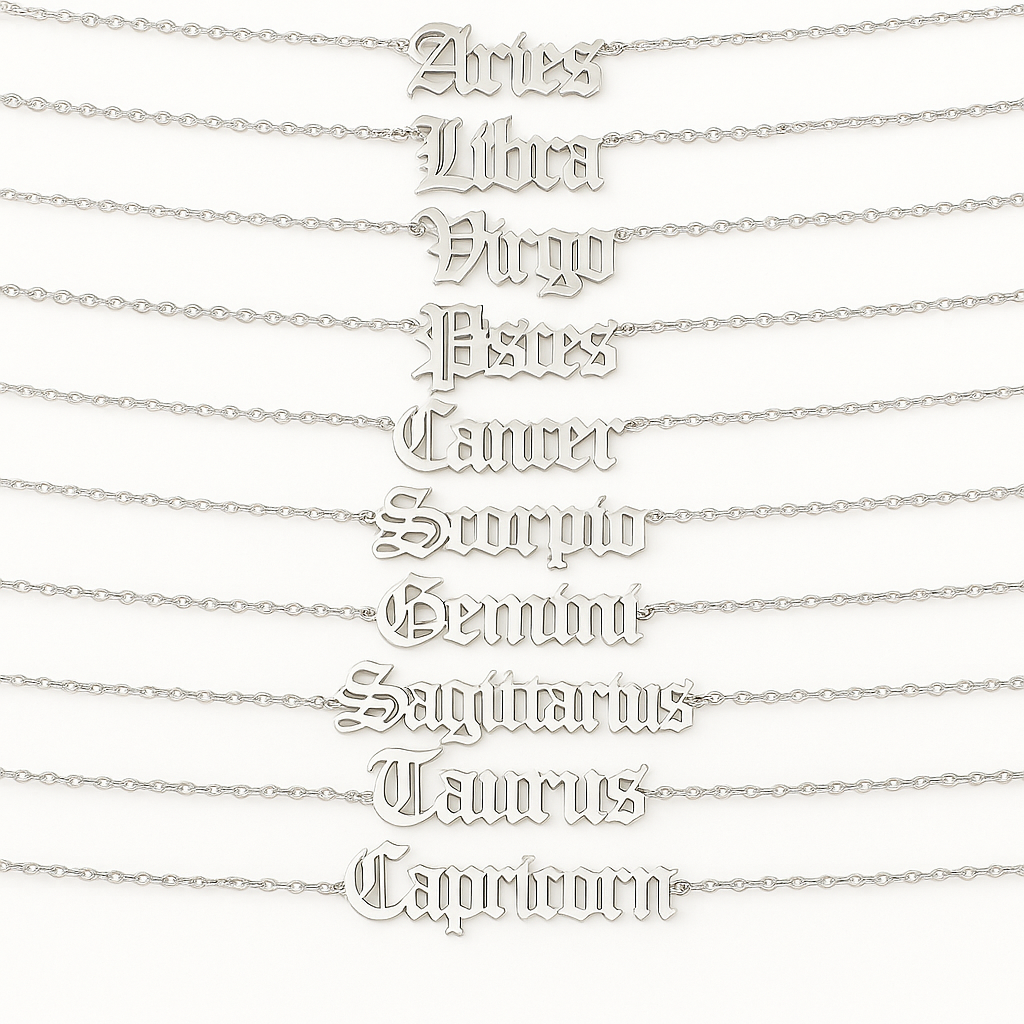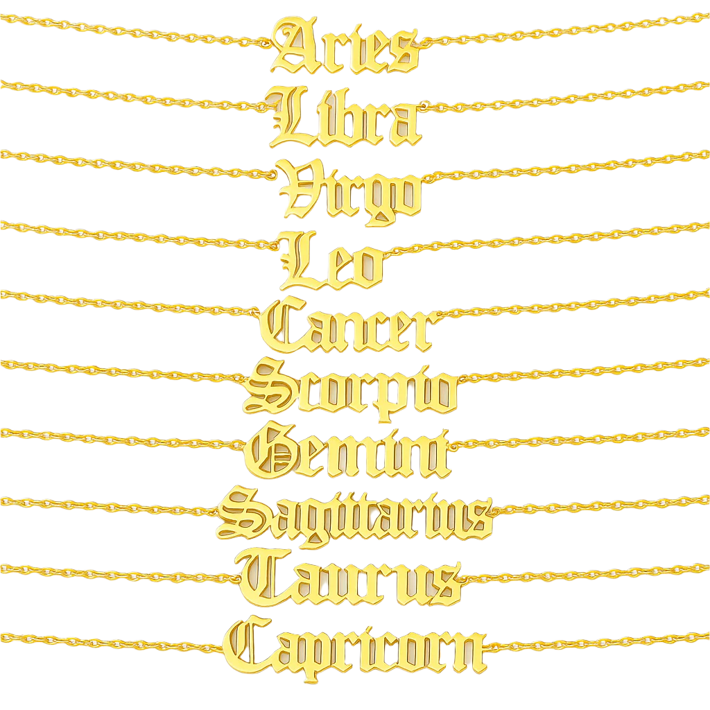 18K gold-plated stainless steel. Tarnish-free, water-resistant, and hypoallergenic design. This chain is available in gold or silver and we offer all Zodiac signs.